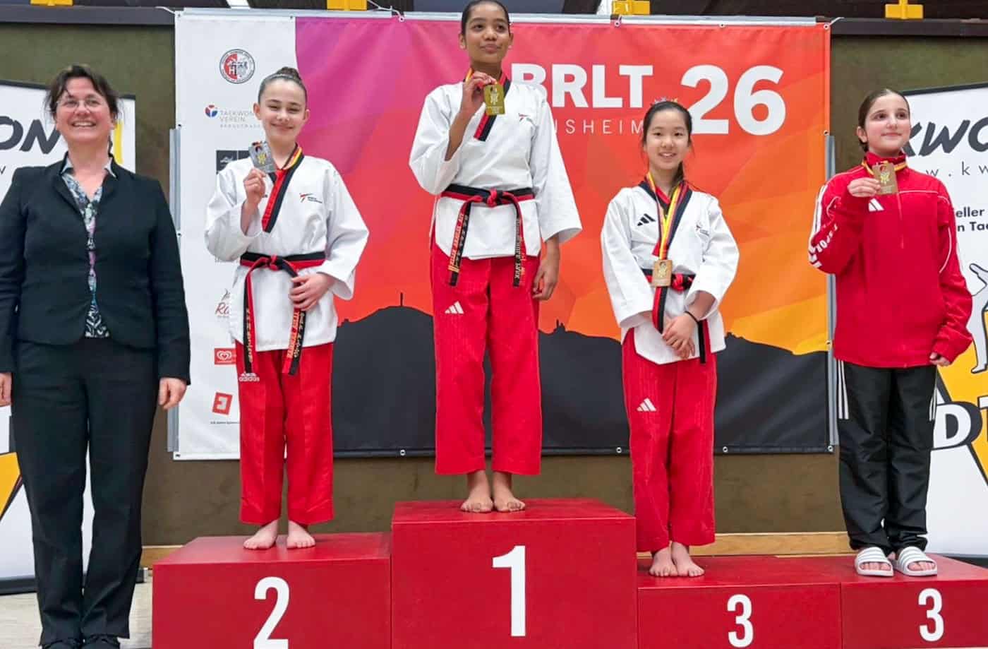 Auch Filiz Sarikoc ging im Einzel sowie im Team mit Melia und Engert (KSG Taepoong e.V.) an den Start. Im Teamwettbewerb konnte sie sich den 1. Platz sichern 🥇. Im Einzel verpasste sie als jüngste Teilnehmerin ihrer Kategorie nur knapp das Podest und belegte einen starken 4. Platz.